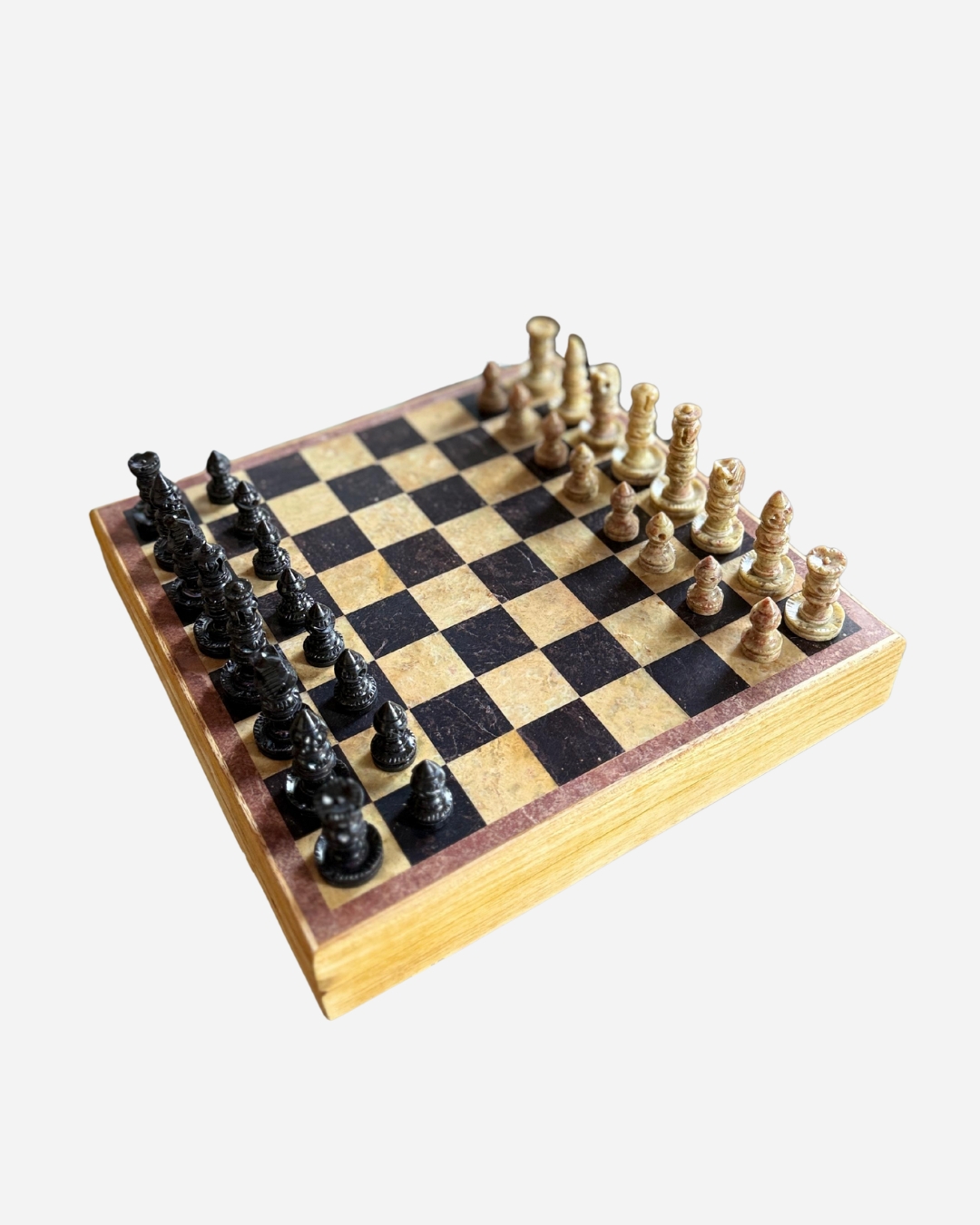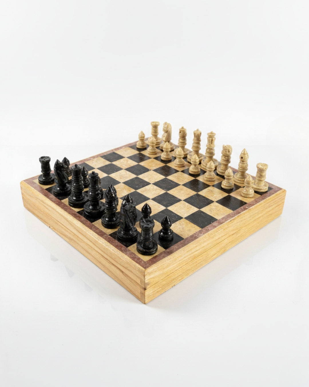 Every chess piece is meticulously carved and polished to perfection, ensuring a refined finish and balanced weight for effortless gameplay. The matching marble board complements the pieces beautifully, with its glossy surface enhancing the rich natural patterns of the stone. No two sets are exactly alike — each one is a unique expression of nature and craftsmanship.